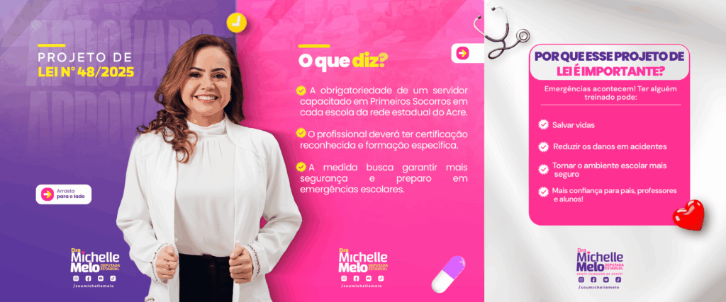 “Conhecer e aplicar Primeiros Socorros pode fazer a diferença entre salvar ou perder uma vida. Este projeto busca proteger nossas crianças, jovens e toda a comunidade escolar diante de situações emergenciais”, destacou a deputada Dra. Michelle Melo.